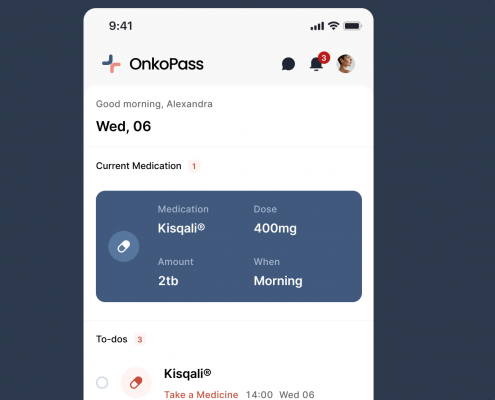 OnkoPass bietet Krebspatienten individuelle Unterstützung während der Behandlung. OnkoPass stärkt die Interaktion mit dem Behandlungsteam und hilft Patienten stets einen aktuellen Therapie Überblick zu haben. So können sich Patienten ganz auf ihre Gesundheit und weniger auf die Organisation der Therapie konzentrieren.